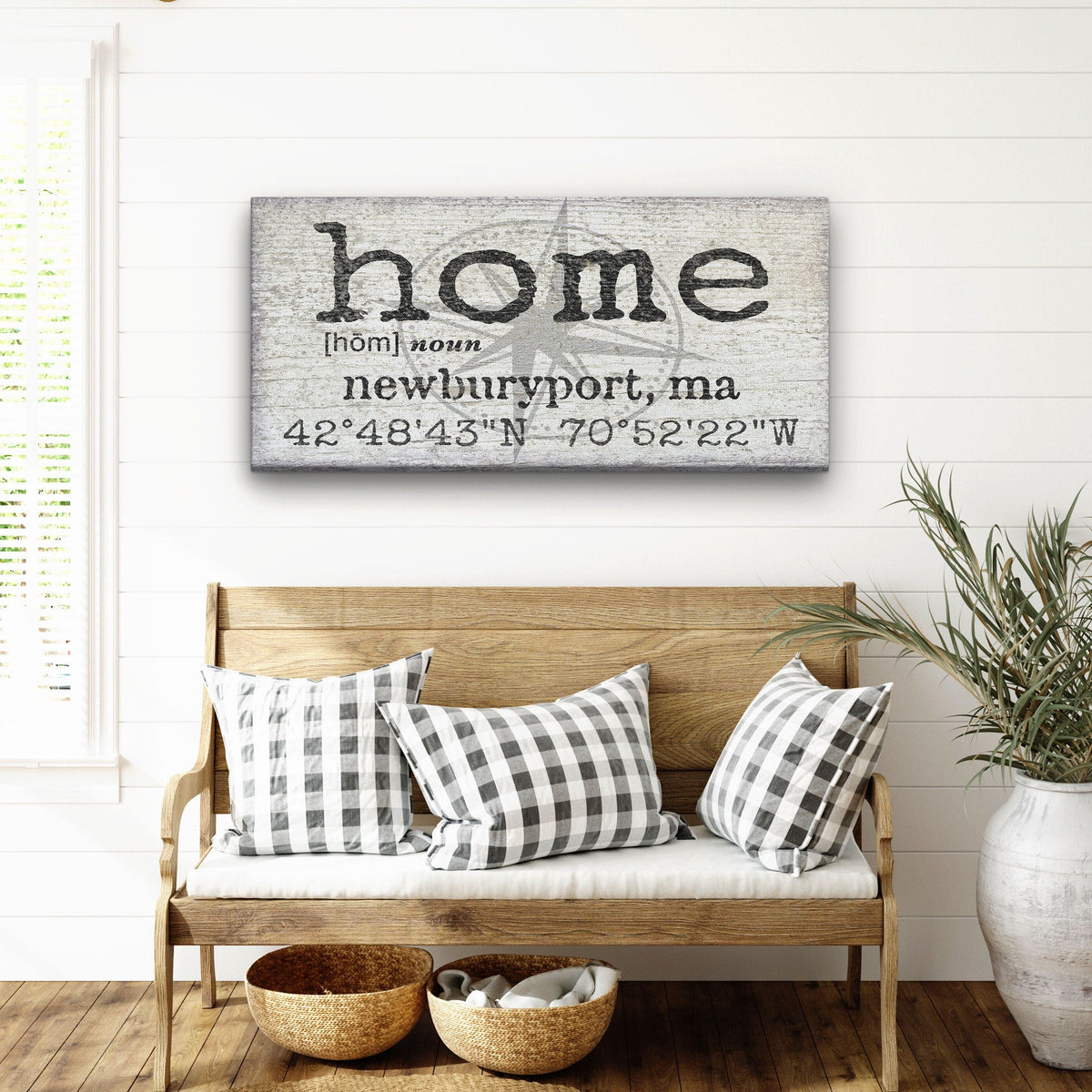Add an element of rustic charm to your homes entryway with this handsome Personalized Home Latitude Longitude gallery wrapped canvas featuring a hometown City & State. This custom-made wall décor is truly unique, featuring your GPS coordinates, City and State laid out on a distressed wood look canvas with incredibly life-like detail.